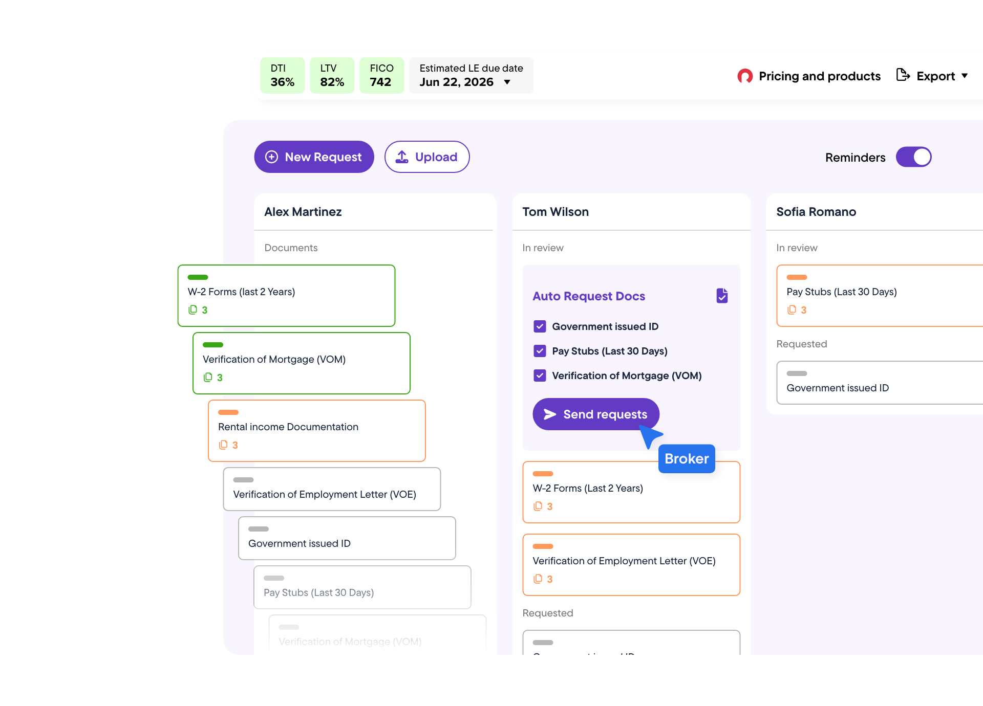 Borrowers upload documents through a secure portal with two-factor authentication — not email attachments.
